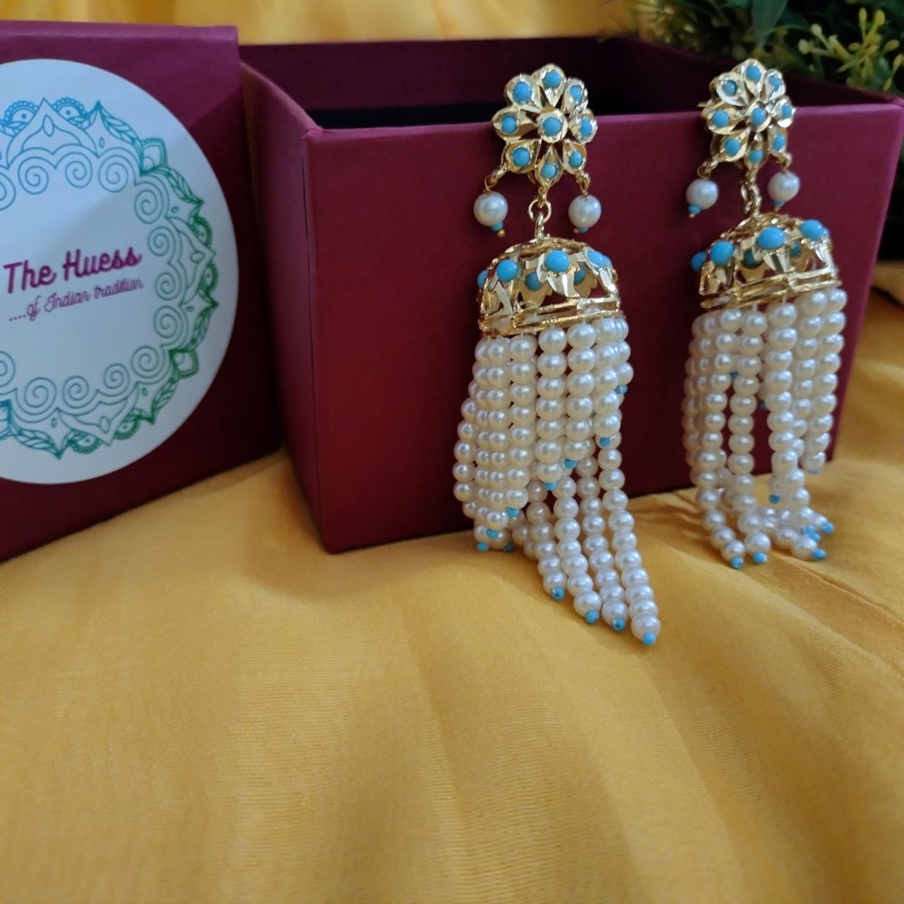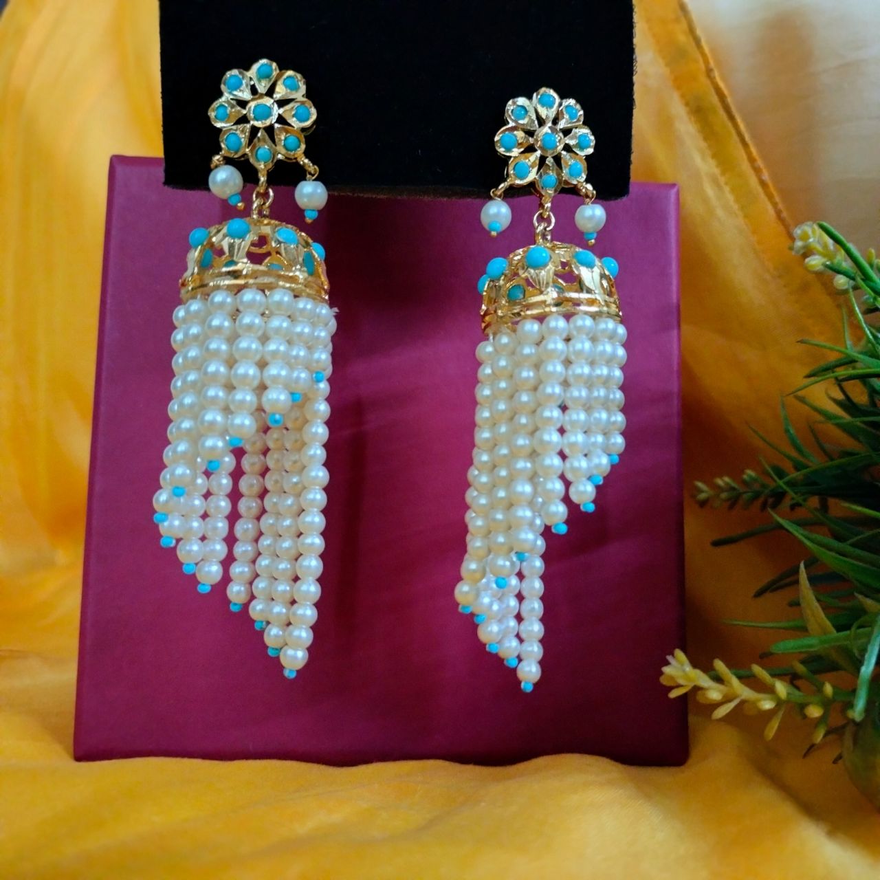 * Polki stones, blue beads & pearl strings.